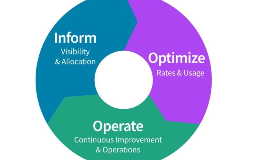 The FinOps lifecycle repeats itself in regular iterations. It can be divided into three successive phases: